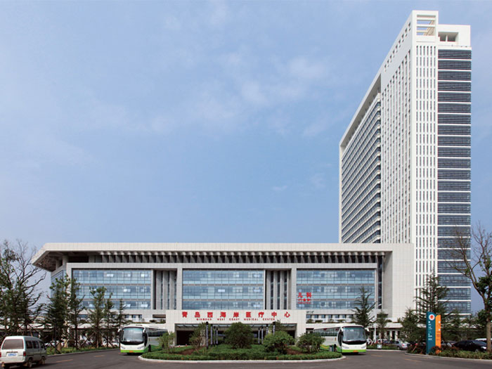 青岛西海岸医疗中心占地18公顷,整个用地范围内,东侧为医疗区,西侧为生活区,中间是以利用原有水体改造形成的生态湖为中心的花园。医疗区一期建成综合楼(19.6万平方米)、洗衣房(3300平方米)和感染门诊(1700平方米),基本涵盖了医院的全部功能,总床位1500床,手术室21间。二期规划了一栋17层的科研办公楼、一栋19层的康复病房楼和一栋10层的特需病房楼。全部建成后,总床位数将达到2400床。该中心是青岛市政府、黄岛区政府和青岛大学医学院附属医院三方共同打造的一座全新的现代化三级甲等医院。本工程获得卫生部“十一五”全国优秀医院建筑规划设计项目奖。