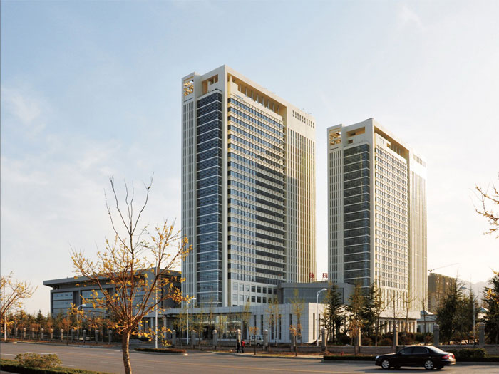 青岛西海岸医疗中心占地18公顷,整个用地范围内,东侧为医疗区,西侧为生活区,中间是以利用原有水体改造形成的生态湖为中心的花园。医疗区一期建成综合楼(19.6万平方米)、洗衣房(3300平方米)和感染门诊(1700平方米),基本涵盖了医院的全部功能,总床位1500床,手术室21间。二期规划了一栋17层的科研办公楼、一栋19层的康复病房楼和一栋10层的特需病房楼。全部建成后,总床位数将达到2400床。该中心是青岛市政府、黄岛区政府和青岛大学医学院附属医院三方共同打造的一座全新的现代化三级甲等医院。本工程获得卫生部“十一五”全国优秀医院建筑规划设计项目奖。