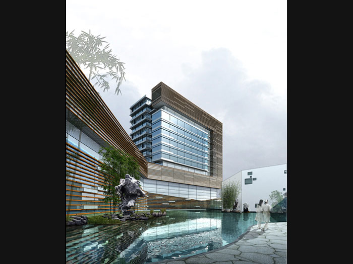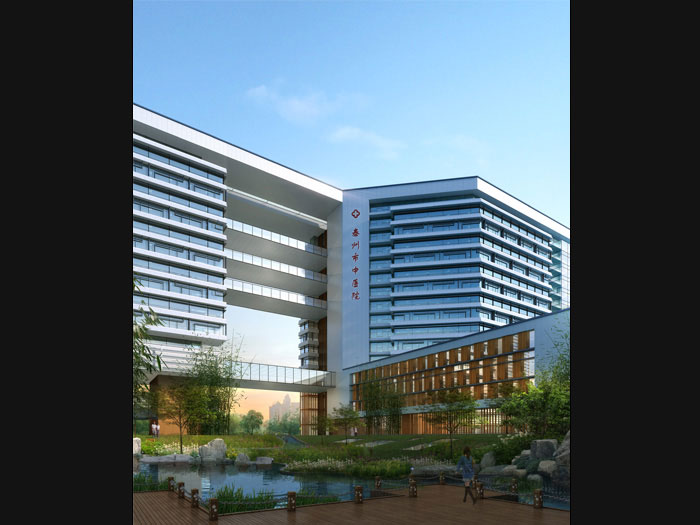 在设计泰州市中医院时,我们寻求传统又现代的结合点,尝试找到古人与现代人的在精神层面上的血缘关系,中华文明发展过程中,古人与现代人精神上的契合点是对自然和生命认知的统一,崇尚自然的精神诉求、生态健康的生命诉求,是传统与现代在精神上最好的传承。中华文明最核心的价值是对自然和生命的尊重,取于自然,用于生命;保持这种核心精神价值传承,并对建筑加以形式的创新。这样的建筑“形式上现代,思想上传统”。